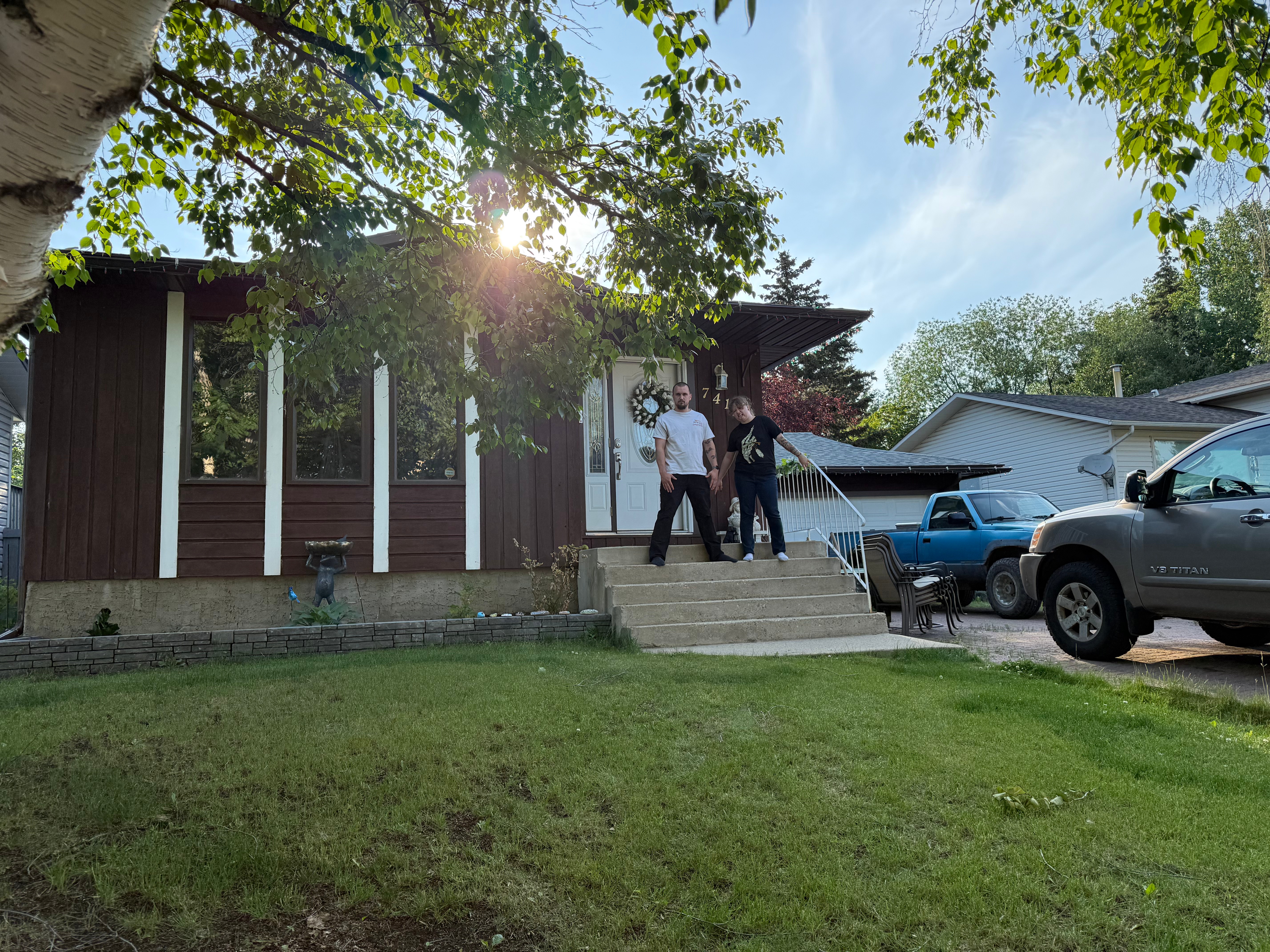 Talon and I were part of the same big friend group in grade 12 but not directly friends, until a backyard campfire with the group at my moms house. It was shortly after grad. We first connected when I chastised him for skipping a song by Blue Oyster Cult. Talon stayed at my house long after the other guests left showing me one of his favourite movies at the time, Talladega Nights, and raving about his dads ribs recipe. Eventually he went home and we were just friends for a while. Then one day he was bored during his week off from work. I joked that he should come visit me at university, after 5 hours of no responses he was there at my dorm. I guess they say the rest is history (the ribs were very good). Though we really became official at his moms house after a date at Mr. Mikes.